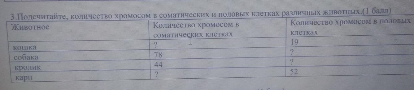 подсчитайте в количество в соматических и половых клетках различных животных​