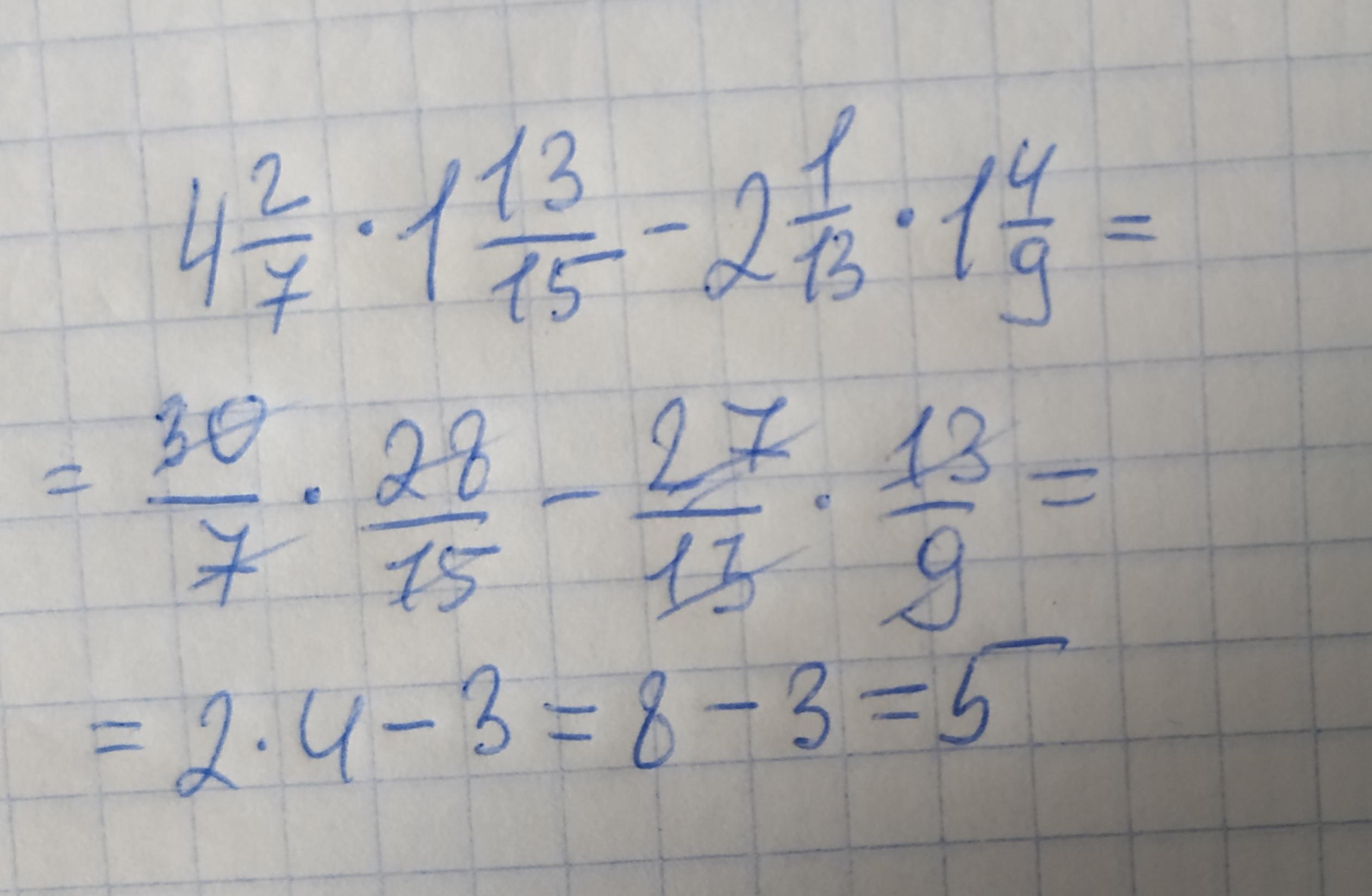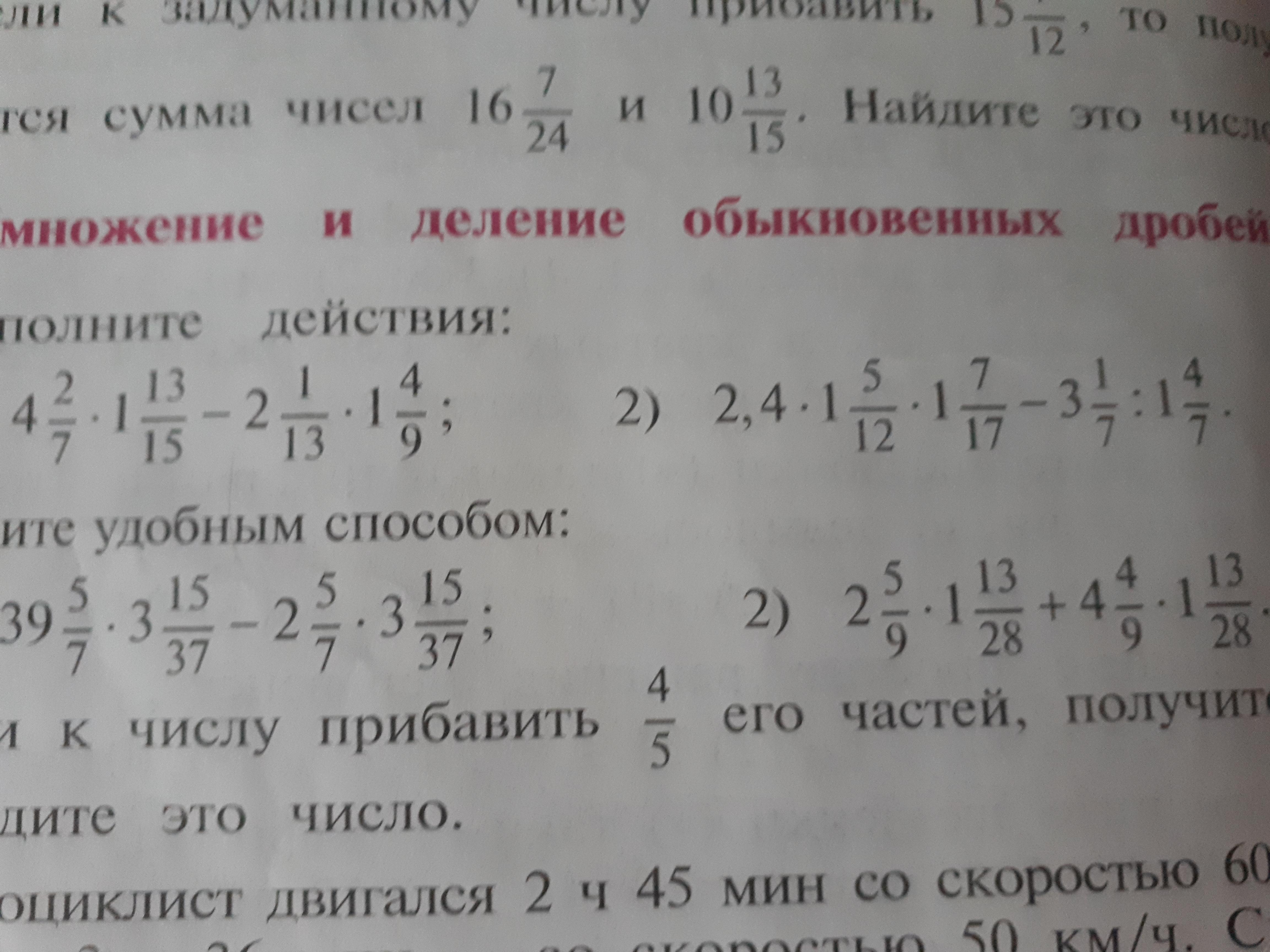 Номер 1187 выполните действия 4 2/7×1 13/15-2 1/13×1 4/9