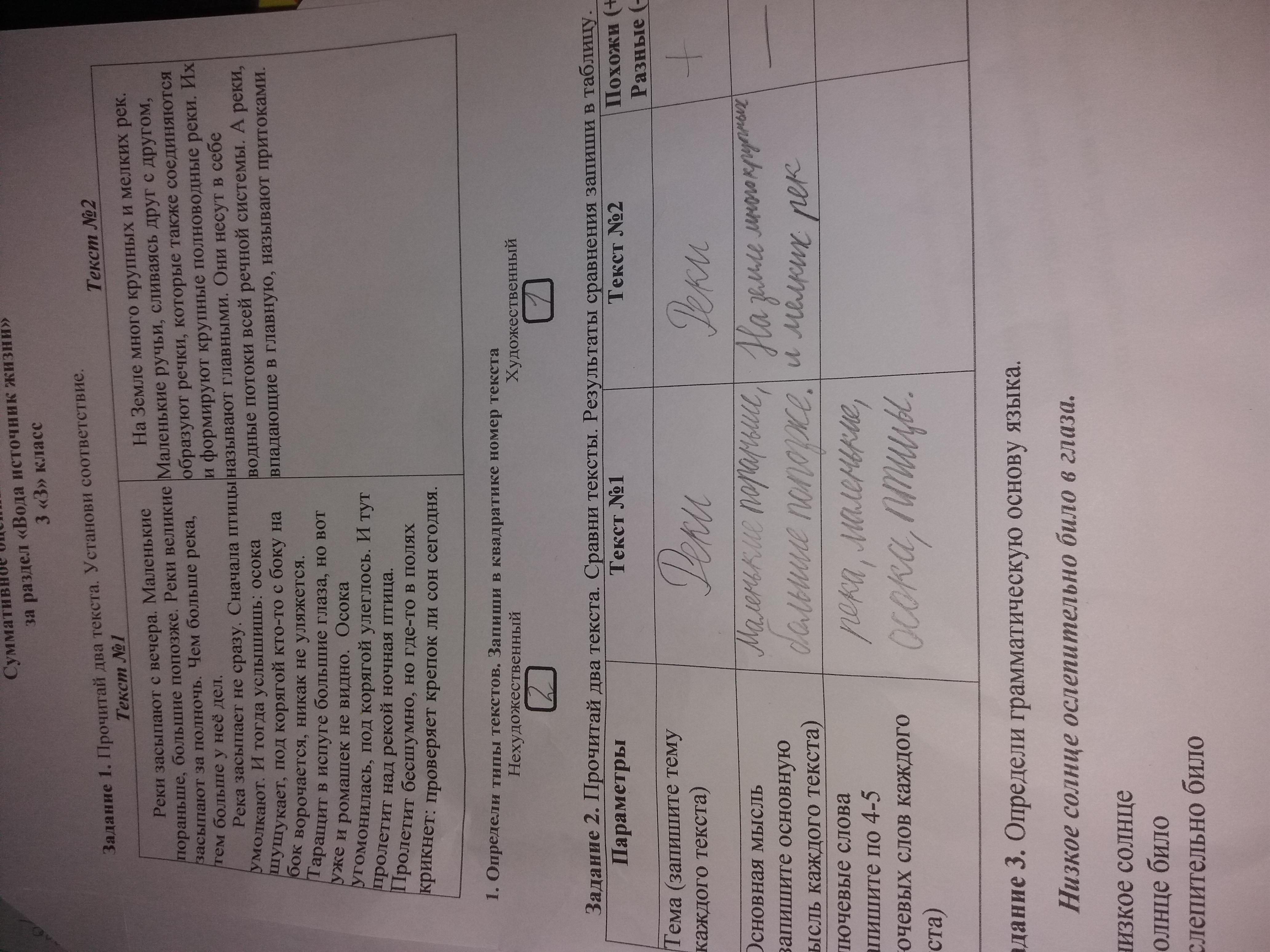 Задание 2. Прочитай два текста. Сравни тексты. Результаты сравнения запиши в таблицу.