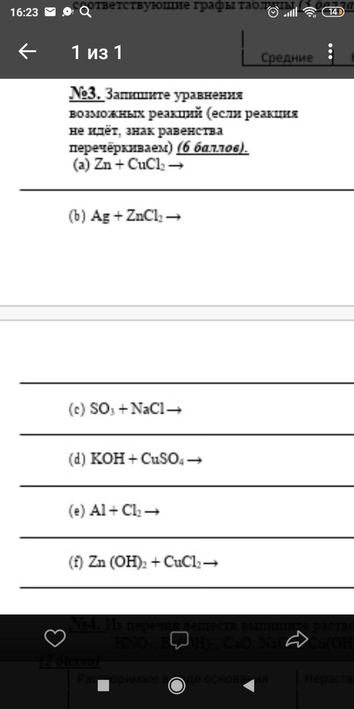 f) Zn(OH) 2+CuCl2 =Cu(OH)2 + ZnCl2