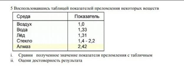 воспользовавшись таблицей показателей преломления некоторых веществ