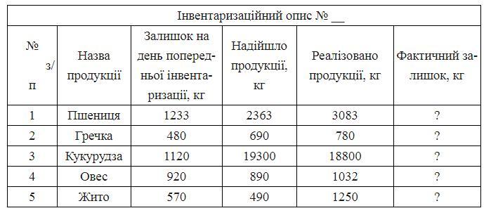 Фактичний залишок = Залишок + Надiйшло - Реалiзовано