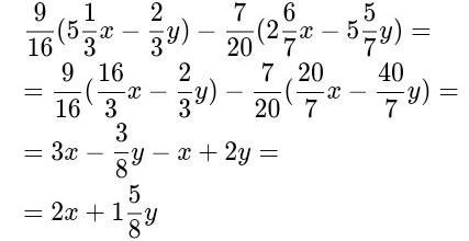 9/16×(5 1/3x-2/3y)-7/20×(2 6/7x-5 5/7y)