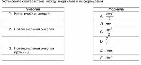 установите соответствие между энергиями и их формулами​