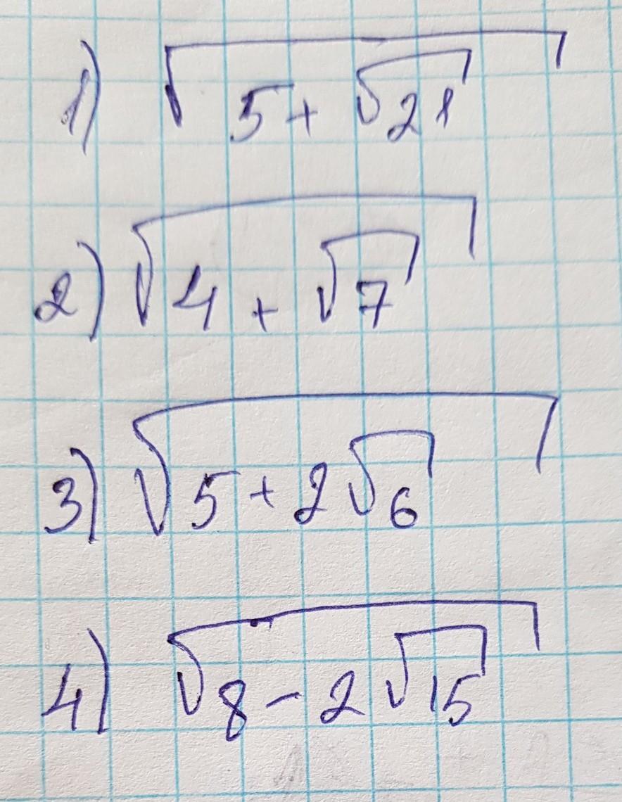 Необходимо избавиться от внешнего радикала. Для этого представить выражение под радикалом в виде квадрата суммы: