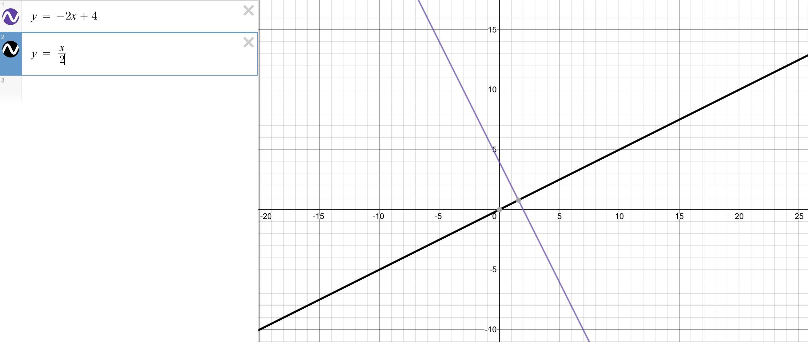 1) 2x + y - 4 = 0 => y = -2x + 4