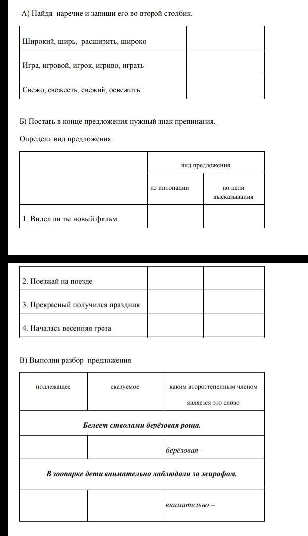 В) Белеет стволами березовая роща. Подлежащие - роща, сказуемое -