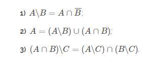 Докажите следующие свойства операций над множествами(cм. вложение)