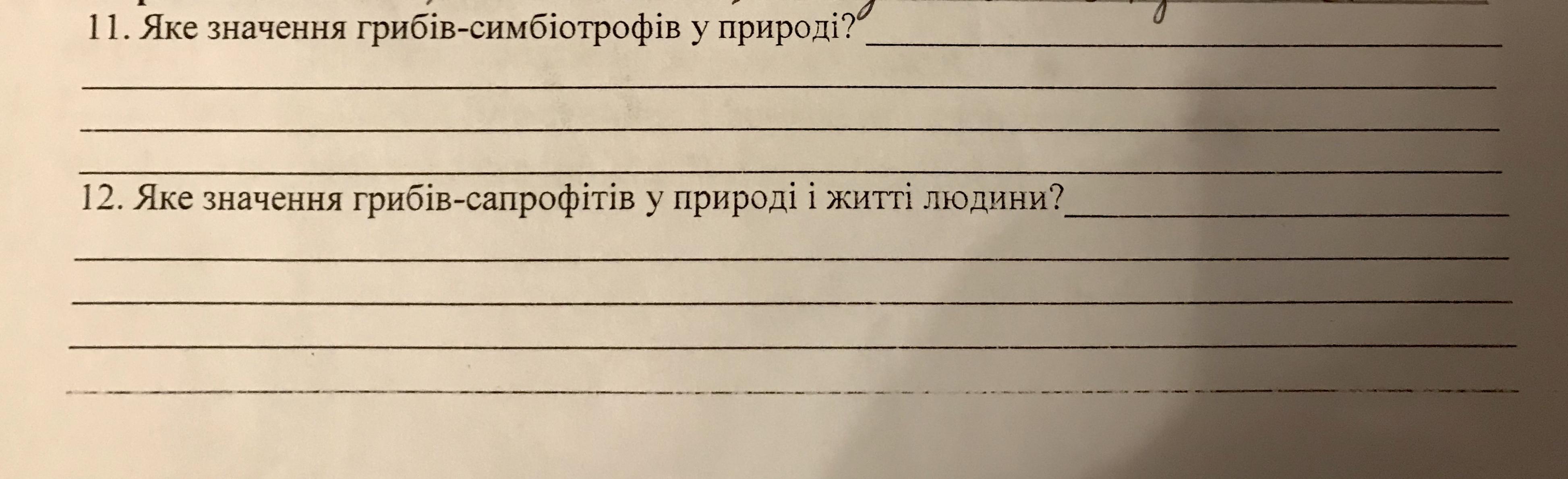 11. Макроскопічні гриби-симбіотрофи ростуть переважно на ґрунті. Саме до них належить більшість їстівних та отруйних шапинкових грибів. Поживні речовини такі гриби отримують не безпосередньо з ґрунту, а від кореневих систем рослин, з якими їх міцелій вступає у взаємовигідний симбіоз. Цей симбіоз називається міхор&за (від грецького «мікос* — гриб, та «ризос» — корінь).