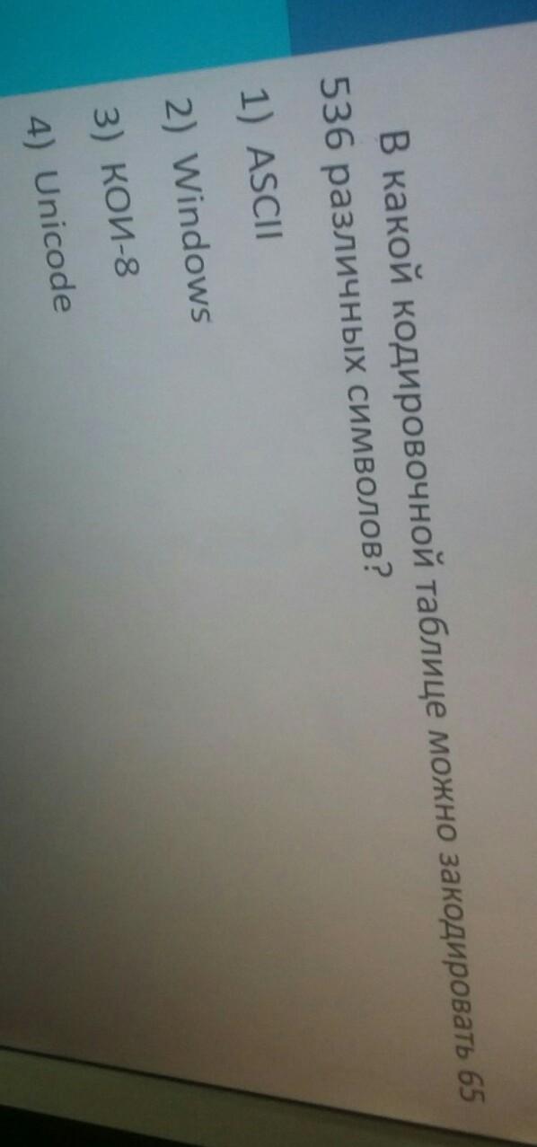 4) Unicode потому-что в нём отводится 2 байта на символ.