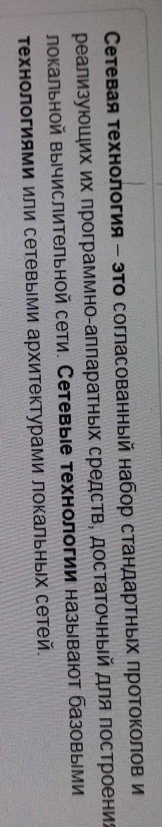 Сетевая технология – это согласованный набор стандартных протоколов и реализующих их программно-аппаратных средств, достаточный для построения локальной вычислительной сети. Сетевые технологии называют базовыми технологиями или сетевыми архитектурами локальных сетей.