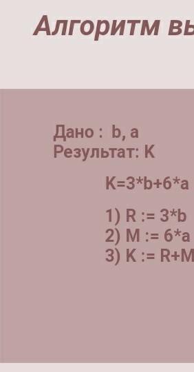 Алгоритм вычисления значения выражения K=3b+6а.