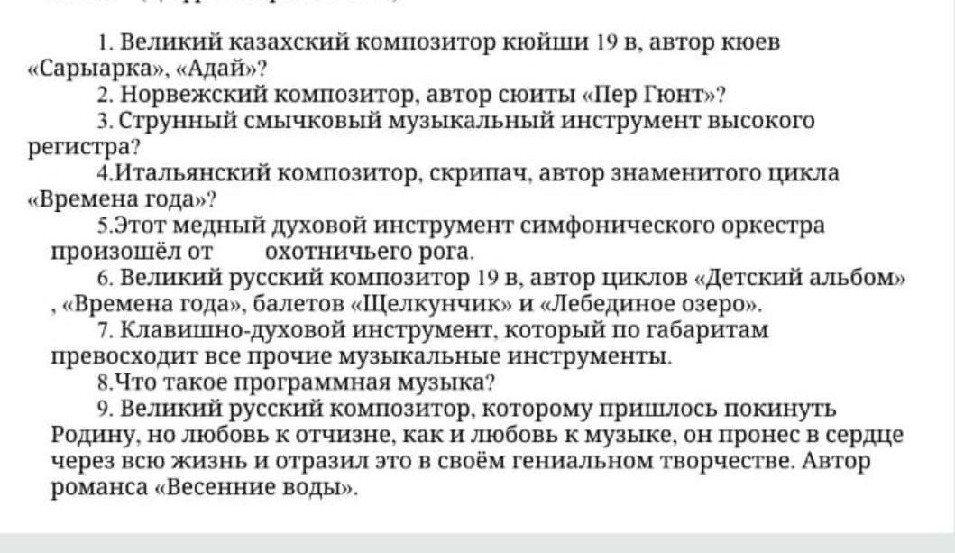 8. Академическая музыка, не включающая в себя словесный текст, то есть инструментальная, однако сопровождаемая словесным указанием на своё содержание