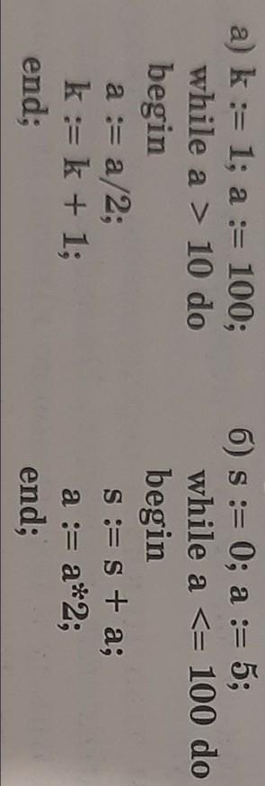 Виконайте фрагмент програми та з'ясуйте, якими будуть значення змінних після його завершення