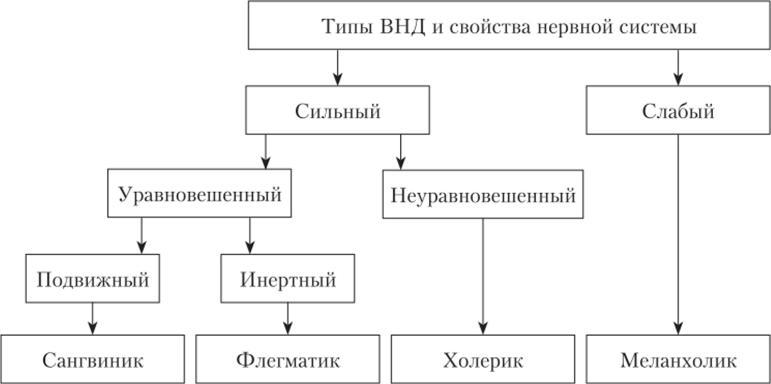В соответствии с этими типами ставились четыре темперамента, описанные еще в античности