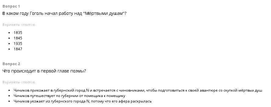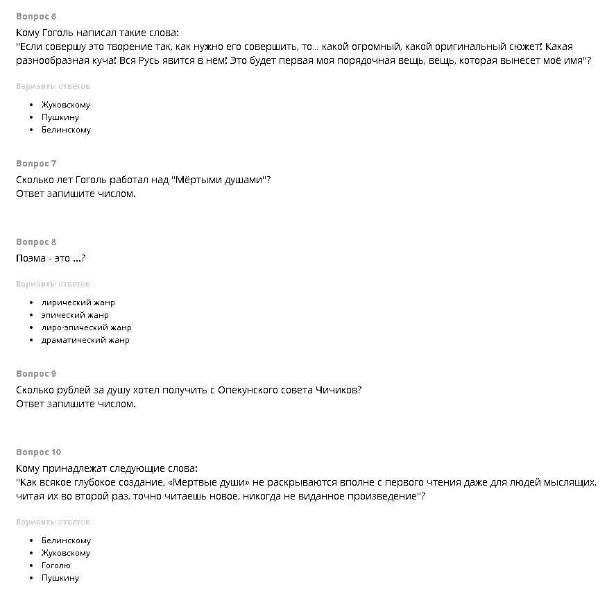 помогите решить тест по произведению "Мёртвые души". 10 вопросов с вариантами ответов(даю 35 баллов) прошу, срочно!