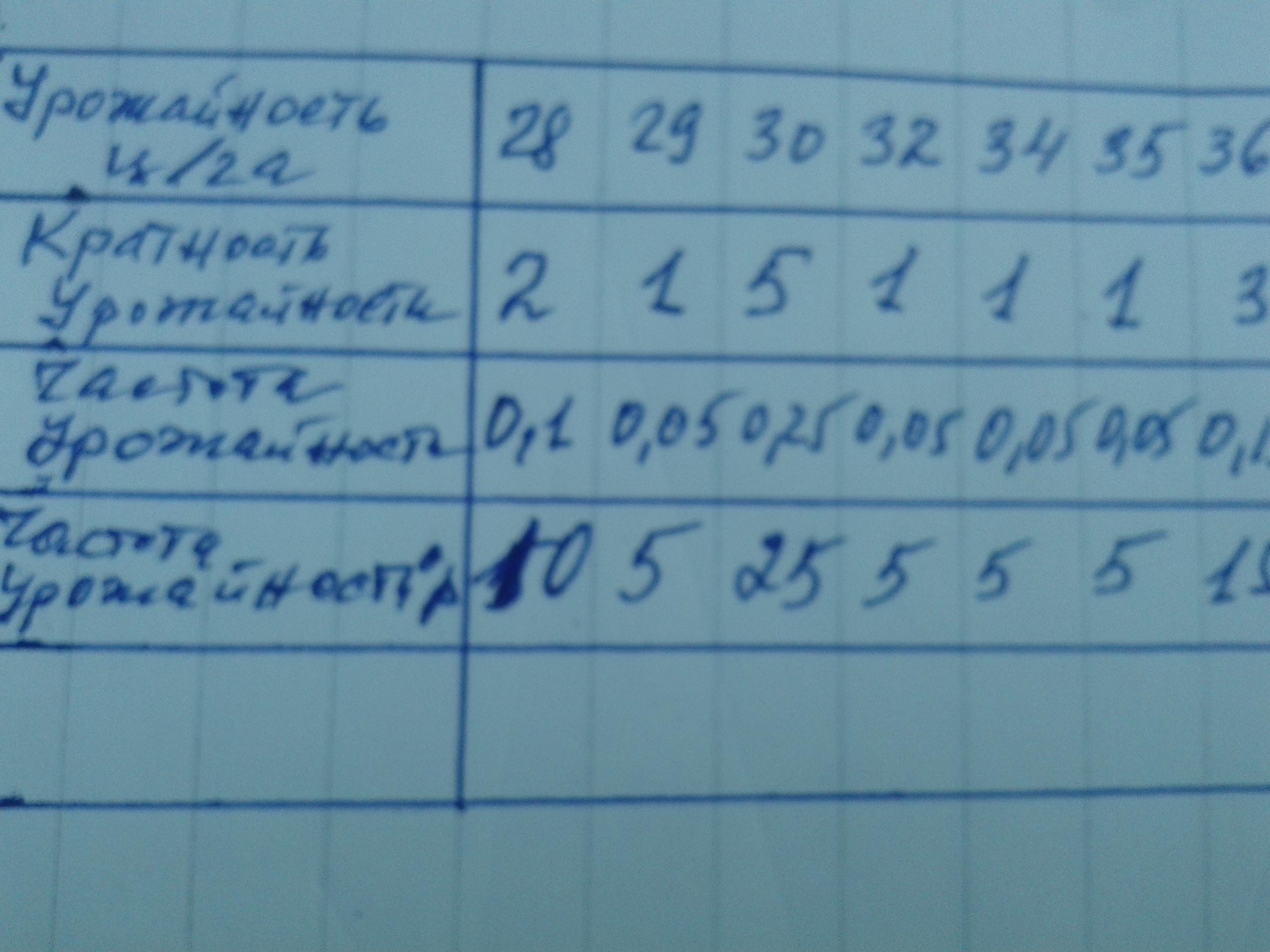 У 20 фермерських господарствах району врожайність пшениці (у ц з га) була такою: 35 28 30 41 30 34 36 30 38 36 28 29 32 30 38 36 41 42 38 30 знайдіть частоту кожної варіанти складіть таблицю варіант і частот побудуйте полігон частот