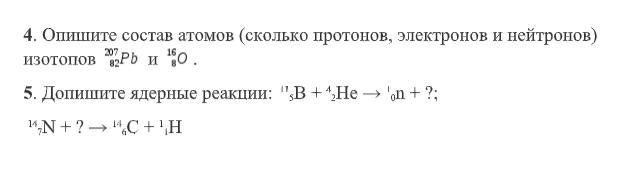 4. У свинца 82 протона, 82 электрона (количество протонов равно числу электронов), 125 нейтронов (их число находится путём вычитания из массового числа количества протонов)