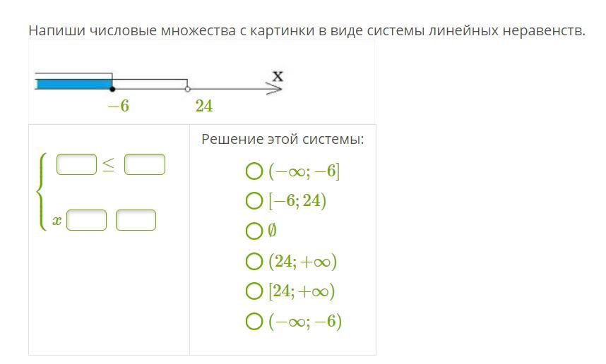 Напиши числовые множества с картинки в виде системы линейных неравенств.