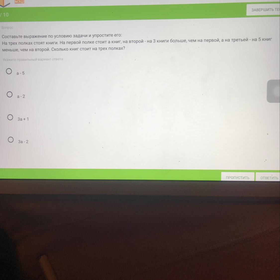 3-я полка: а+3-5 = а-2 книг