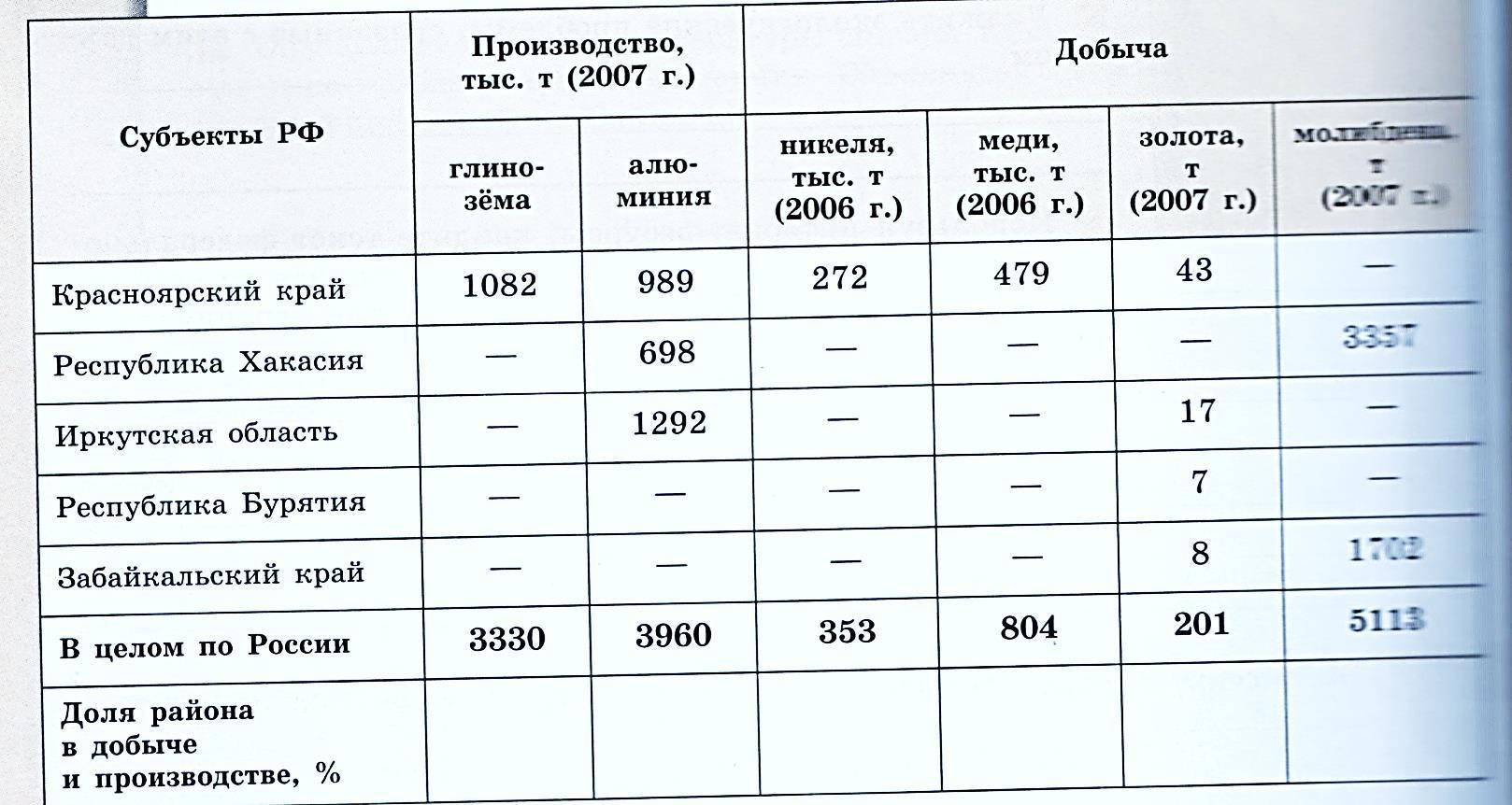 1. Укажите металл, добычи которого практически полностью приходятся на Восточную Сибирь. В каком из субъектов добывается их большая часть?