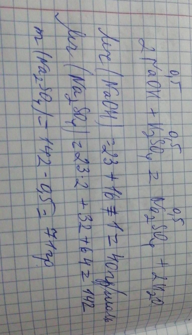 калий гидроксидом:карбон (4)оксид,магний оксид, феррум(2)хлорид,натрий хлорид,нитратная кислота. Составьте уравнения возможных реакций. (см есть ли правила,что данные классы вешеств реагируют,а построение веществ у вас есть в тетради и уч). 4.Найти массу соли ,если реагирует сульфатная кислота и 0,5 моль натрий гидроксида.