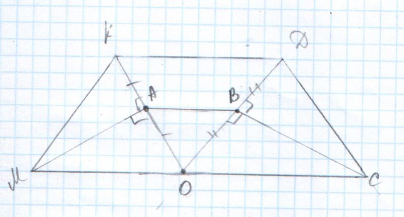 Аналогично BD=BО. если рассмотреть треугольник KDO то в нем АВ средняя линия, значит она параллельна основанию так? И равна его половине,т.е АВ=1/2КД,КД=6( по дано).=> АВ=3см.Вот рисунок разберёшься?