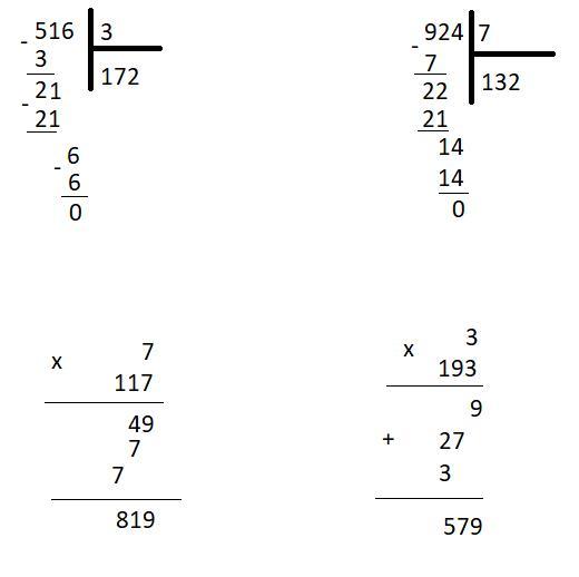 516 : 3 = 172
