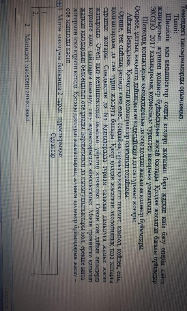 1)Шиелілік қыз-келіншектер нені жаңартты?