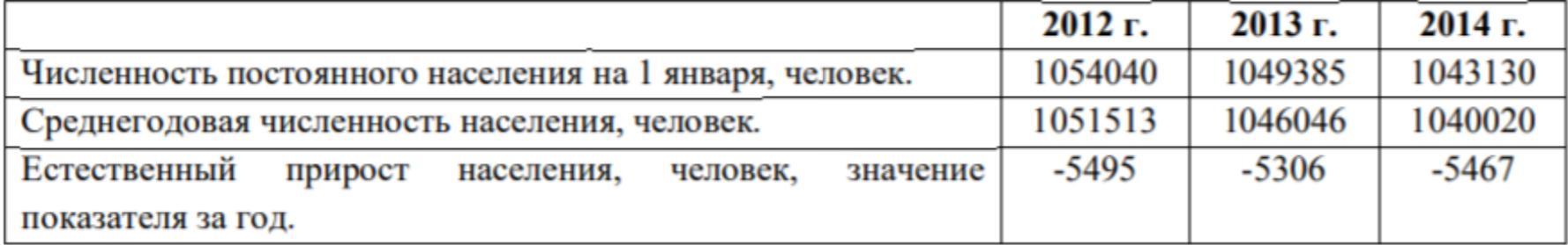 Используя данные таблицы, определите показатель естественного прироста населения (в о /оо) в 2013 г. для Ивановской области. При расчётах используйте показатель среднегодовой численности населения. Запишите решение задачи. Полученный результат округлите до десятых долей.