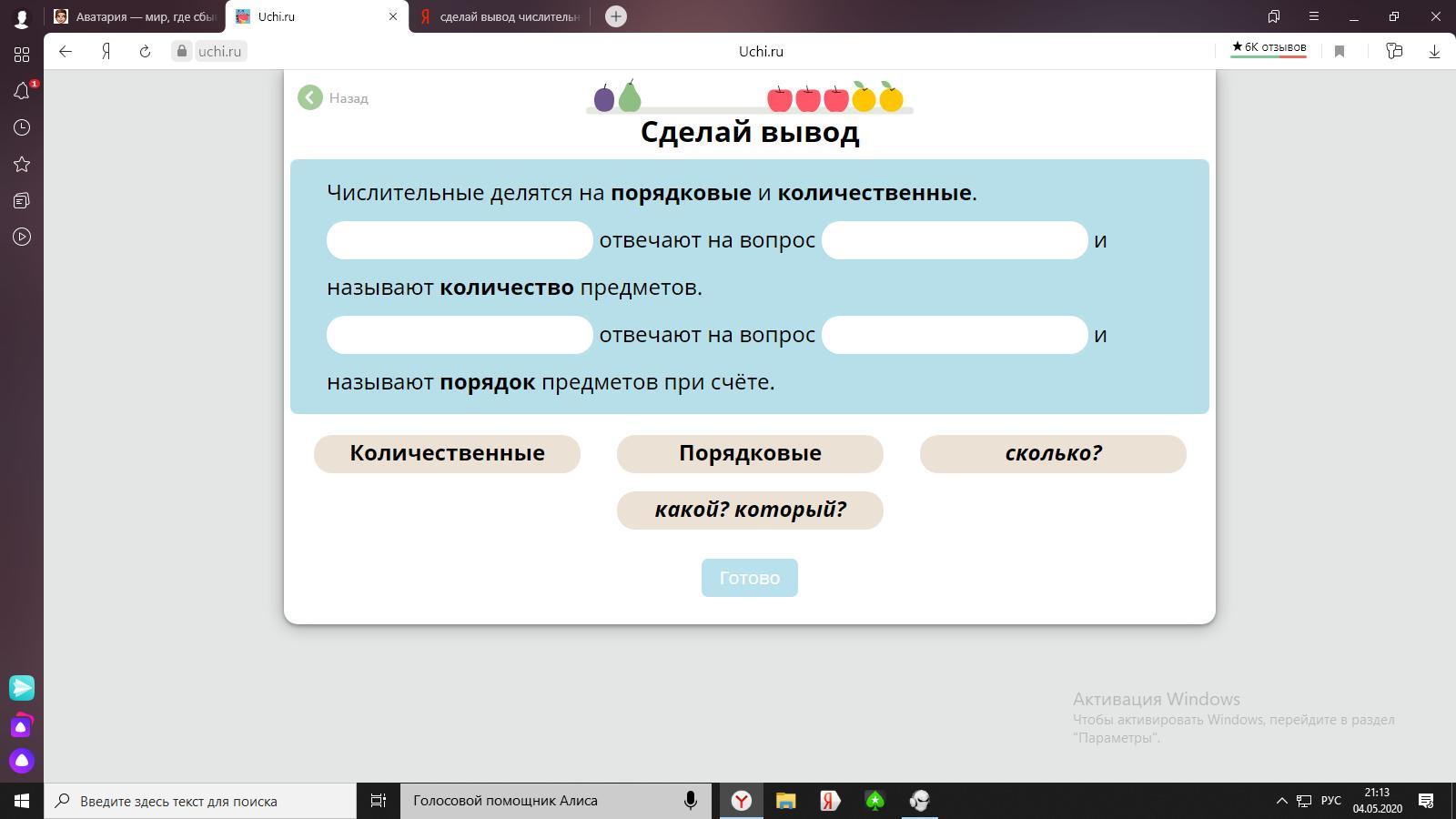 Порядковый вычислительные отвечают на вопросы - какой и который.