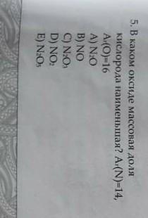 В каком оксиде массовая доля кислорода наименьшая? Аr(N)=14 Ar(O)=16