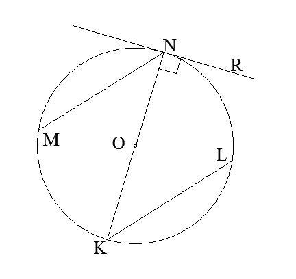 - Достроим MK. Угол КМN опирается на полуокружность=> угол KMN=90°, а треугольник МNK-прямоугольный.