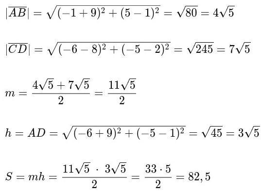 20Баллов.Точки А(-9;1), В(-1;5), С(8;2), D(-6;-5) – вершины прямоугольной трапеции с основаниями АВ и CD. Найдите длину средней линии