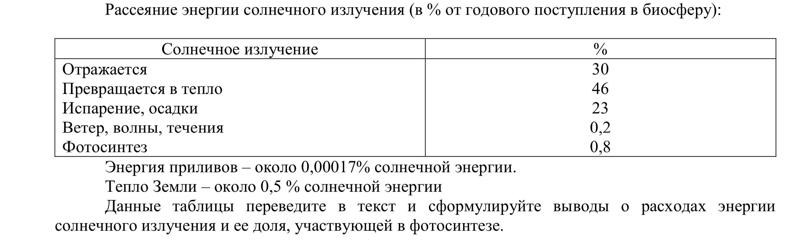Данные таблицы (на картинке) переведите в текст и сформулируйте выводы о расходах энергии