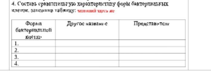 составь сравнительную характеристику форм бактериальных клеток заполните таблитцу