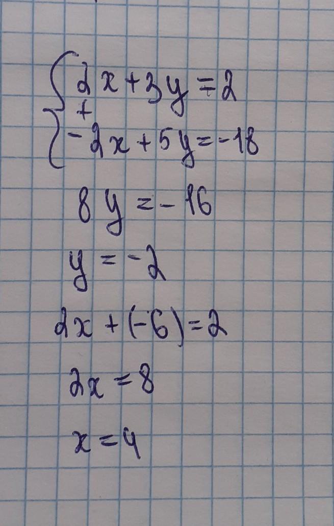 так как иксы одинаковые ,только знаки разные, прибавляешь их друг к другу .Так находишь y