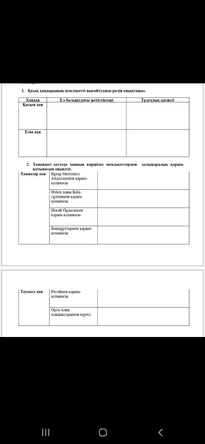 Қасым хан мен Есім хан тапсырмасы ғана бар.
