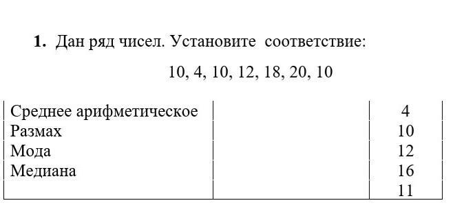 Дан ряд чисел установите соответствие 10 4 10 12 18 20 10