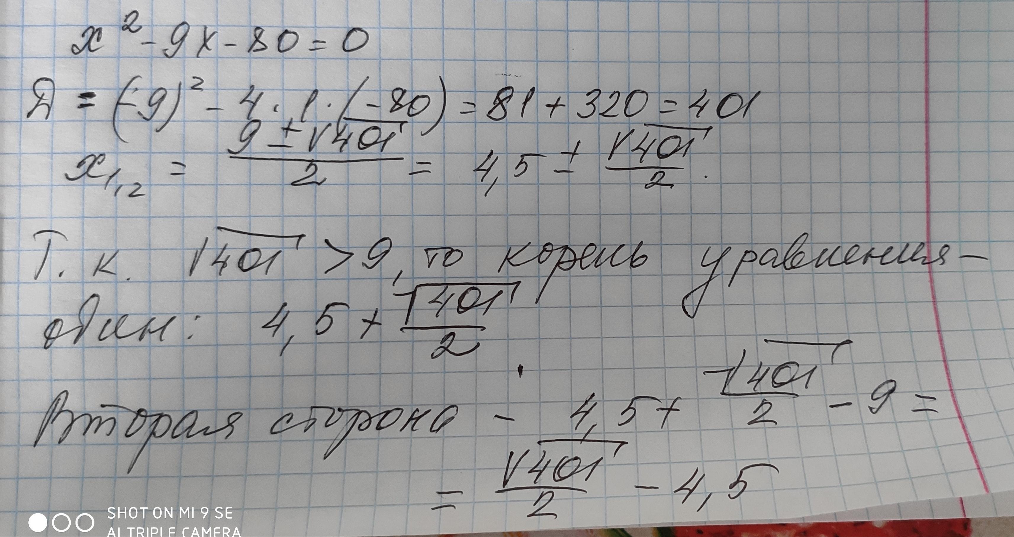 площа прямокутника дорівнює 90см^2.Одна із сторін прямокутника на 9см менша, ніж друга, знайти сторони прямокутника.