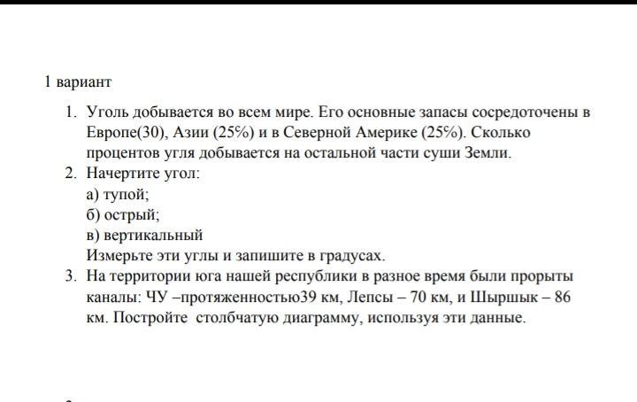 100-(30+25+25)=20% - угля добывается на остальной части суши Земли.