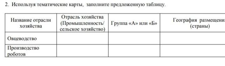 используя тематические карты, заполните предоложеную таблицу Срочно нужно