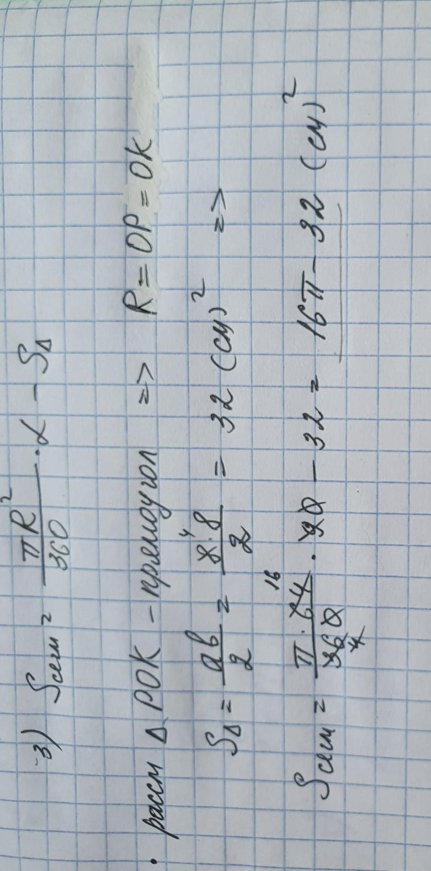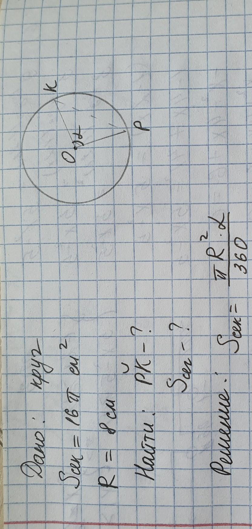 Площадь кругового сектора равна 16Пи см в кв а радиус окружности 8 см найдите длину хордами стягивающей дугу этого сектора и площадь получившегося сегмента