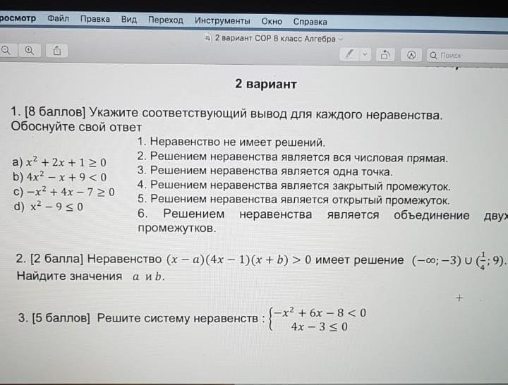 a) x^2+2x+1>0 b) 4x^2-x+9<0
