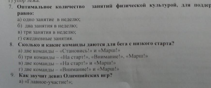 Ответ:Если ты про номер 8 то под буквой б) три команды на старт, внимание,марш.