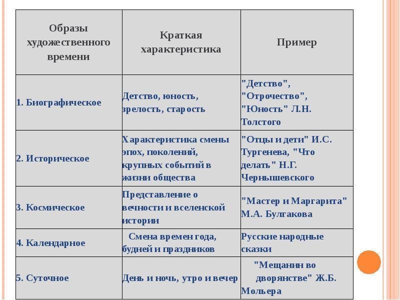 -Какие образы художественного времени ты изучил? (В Приложении даны примеры произведений, которые вы не изучали, вам надо привести свои примеры.)