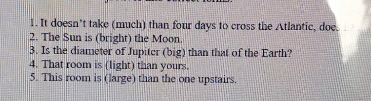 1. It doesn't take (much) than four days to cross the Atlantic, does it?.