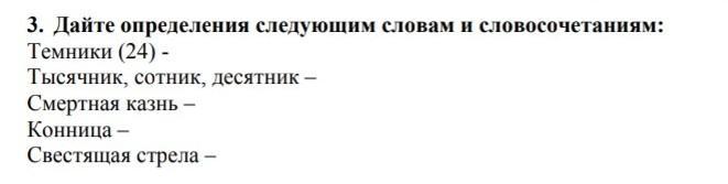 1)конница-Конное войско, кавалерия. 2)темники-от «тьма» — десять тысяч в старинном рус. счёте) 3)смертельная казнь-лишение человека жизни в качестве наказания, узаконенного государством 4)свестящая стрела-наконечник стрелы
