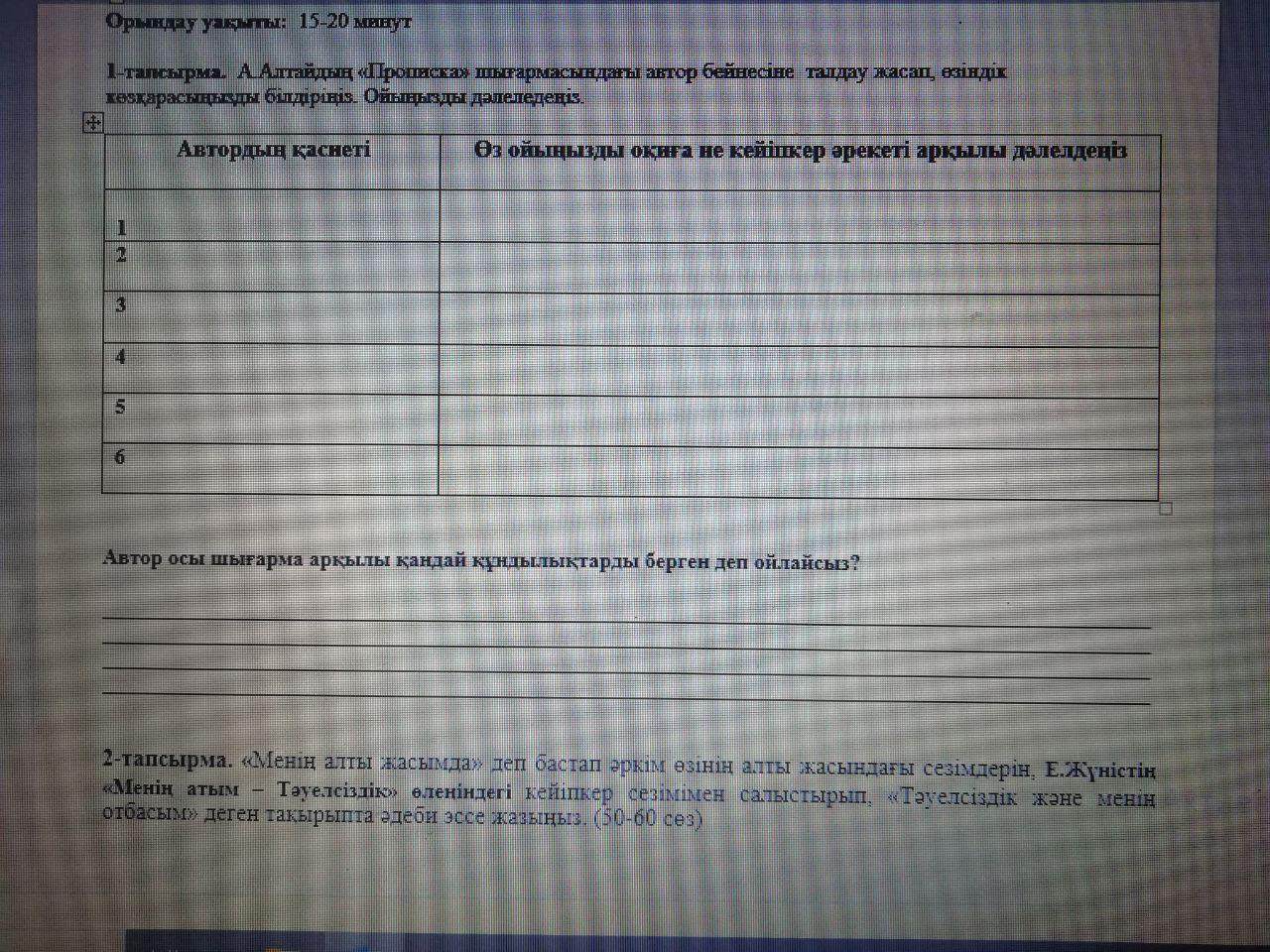 А. Алтайдың <<Прописка>> Шығармасындағы автор бейнесіне талдау жасап, өзіндік көзқарасыңызды білдіріңіз. Ойыңызды дәлелдеңіз.