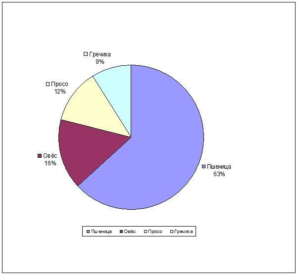 В фермерском хозяйстве площади, отведённые под посевы зерновых, распределены следующим образом: пшеница-63%; овёс-16%; просо-12%; гречиха-9%. Постройте круговую диаграмму. Пожалуйста прикрепите фотографию с круговой диаграммой очень нужно сейчас сор
